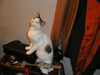 Окрас у барышни стандартный - на белоснежном фоне серые пятна на голове, серый хвост и одно пятно на спинке.
