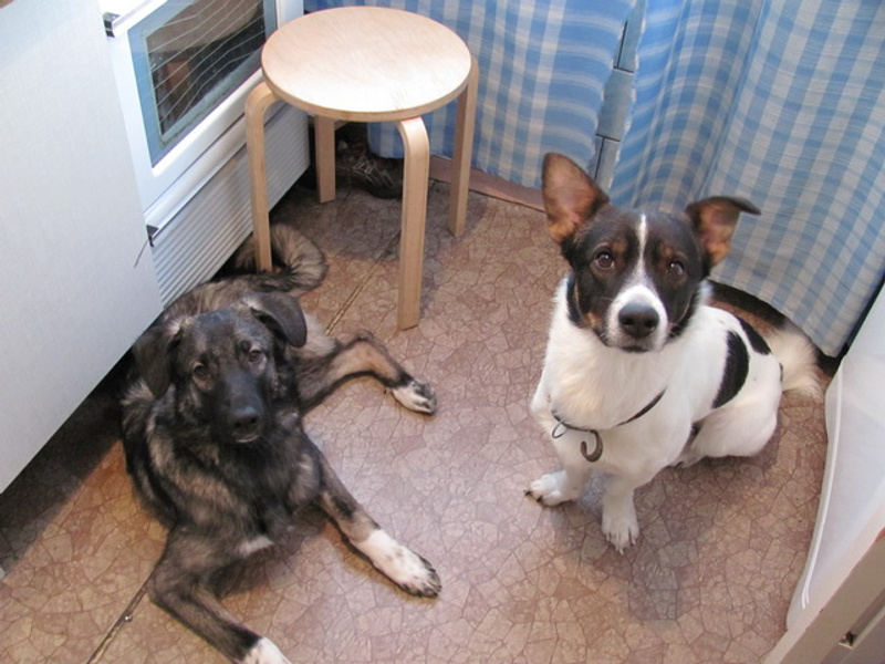 Фидель и Прохор очень разные по темпераменту собаки, если первый – меланхолик, то второй, по этой схеме сангвиник. Это хорошее сочетание, как и разница в возрасте – 2 года. Собственно все это я просчитывала, когда брала Прохора, иначе просто не рискнула бы это сделать. Я консультировалась с кинологами, перед тем как брать вторую собаку, прогноз был следующий: два кобеля с разными темпераментами должны ужиться, а со временем и подружиться, в какой-то момент, когда Прохору будет 7-10 месяцев, может случиться перераспределение ролей – младший будет претендовать на лидерство, исход обычно решается в одной или нескольких драках. Вот этого момента я боялась и боюсь больше всего – мы же волей-неволей переносим человеческую систему ценностей на собачьи отношения, конечно, мне заранее жалко Фиделя. Однако идет время, и я пока не вижу, чтобы Фидель терял лидерство, и было бы замечательно, если бы этот расклад сохранился – Фидель спокойнее, рассудительнее, послушнее, мне гораздо проще, если он командует в их маленькой стае."