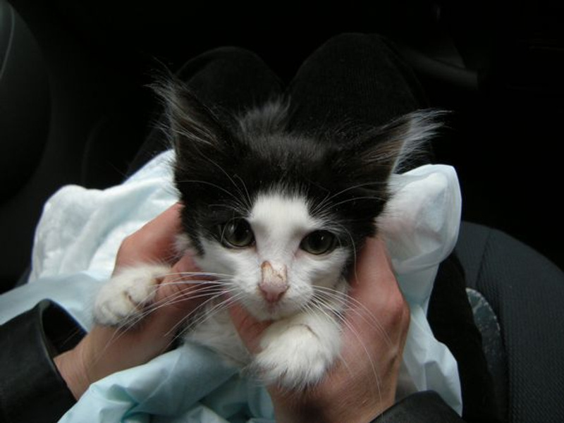 Таким я его увидела впервые, когда мы его забирали из ЦВК после операции - маленький беззащитный комочек