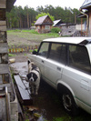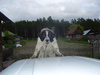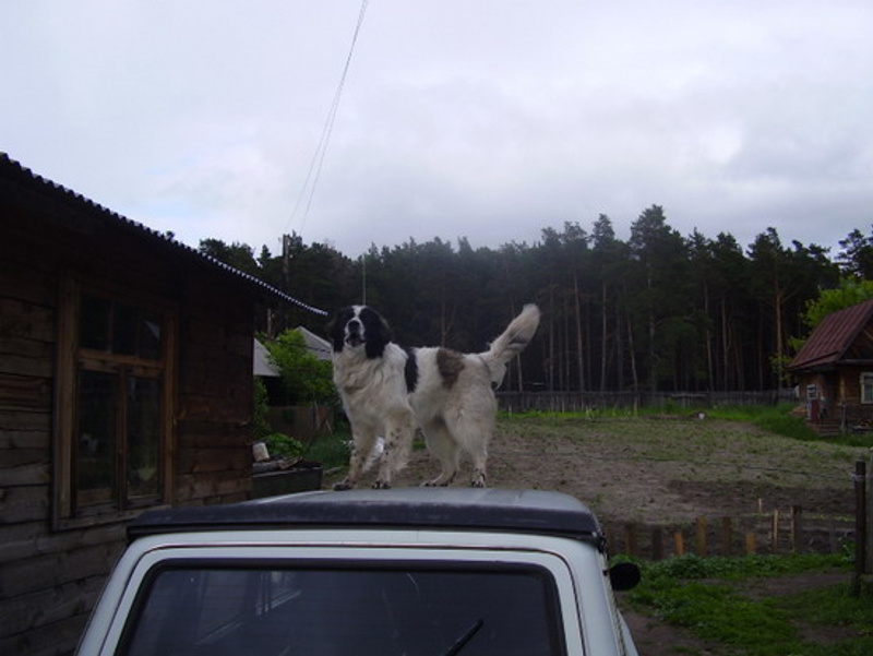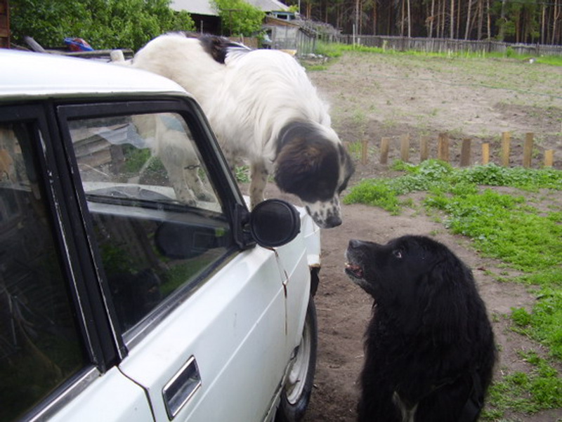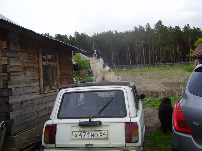 Он у вас как невеста со своим приданым в виде авто.Это он для лучшего обзора. Вдруг козы к воротам подойдут, тогда надо лаять. А если люди - хвостом вилять. И своим, и чужим.