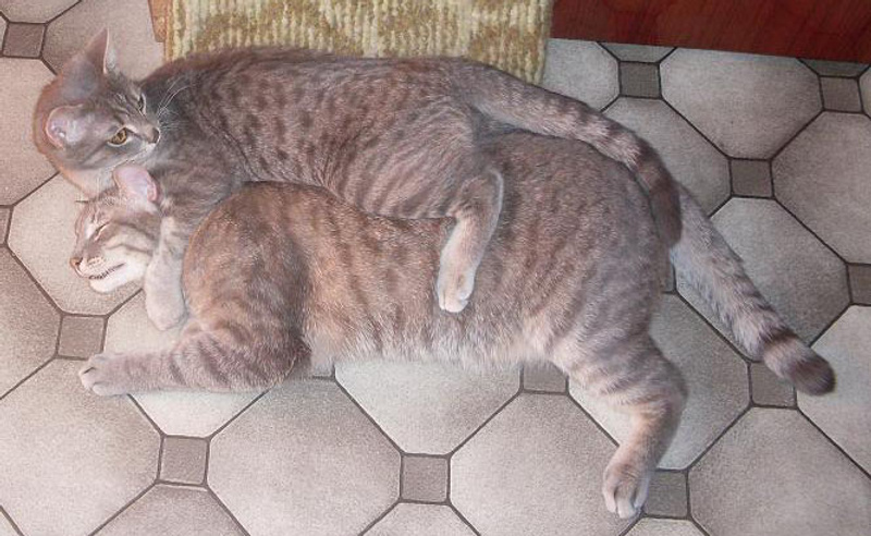 Кот Симон спит только в таком положении. Выглядит очень прикольно, передние лапы в одну сторону, задние в другую