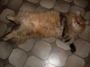 Когда-то у Симки сильно болела спина, по всей видимости в таком положении ему было легче. Спина давно не болит, а привычка осталась