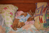 Были сначала и более серъезные проблемы типа укуса рыжим жены в запястье и ее долгое лечение (упухоль, разрезание, уколы, боли и т.п.), прокус Пушком мне тапка вместе с ногой, сустава на пальце, но у меня все обошлось без последствий- все это было, пока мы не поняли, что их надо изолировать и тогда все нормализовалось в принципе. Огонек признал меня, немного жену. Меня он вообще полюбил всей душой и доверяет только мне. Можно даже сказать, что жить и спать без меня не может.