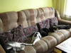 А вот так коты приватизировали диван, мы так..где-нибудь в сторонке.На всех десять котов дивана не хватает.