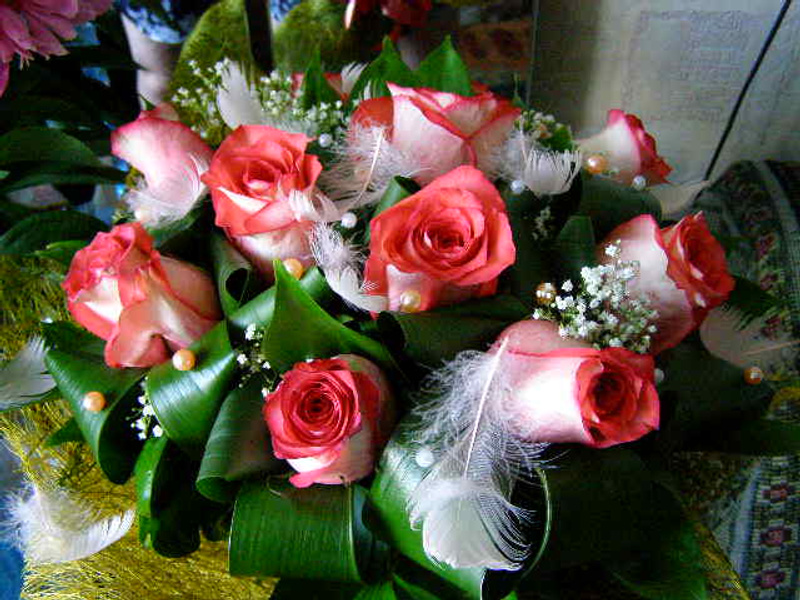 И напоследок... Ну вот не могу не похвастать... Во какой букет мне Любимый подарил... С бусинками и перышками...![]()