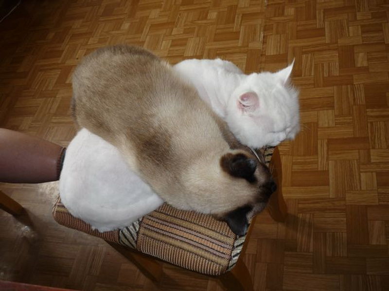 Укромных местечек у нее полно по квартире - под стол залезть или в коридор забиться. И все равно - лежит там, крупной дрожью ее колотит и скулит. А вот Даське вообще на грозу пофиг. Да ему на все пофиг. Пофигист кошачий.