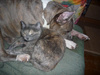 бдительная слишком, сразу голову поднимает, чуть что услышит.Одна кошка - хорошо, две - ещё лучше, а три - просто замечательно!