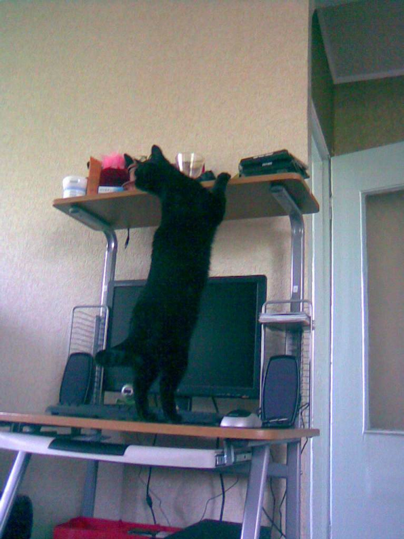 Любопытная, следит за порядком в домеВот-вот, и наша чернюся ничего не пропускает, все надо проверить. Куда не сунешься - отовсюду черный нос лезет. Похоже, что черные все такие.![]()