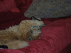 на стуле уже не помещается - с одной стороны лапы висят, с другой - хвост. А ведь нам еще и 4-х месяцев нет. Такими темпами у меня не кот, а гиппопотам вырастет