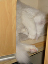 Тань. это как он забрался? шкаф- типа витрины закрытой...Не-а, это шкафчик-тумбочка, ожидающая ремонта (пару шарниров купить и обклеить по-новой).