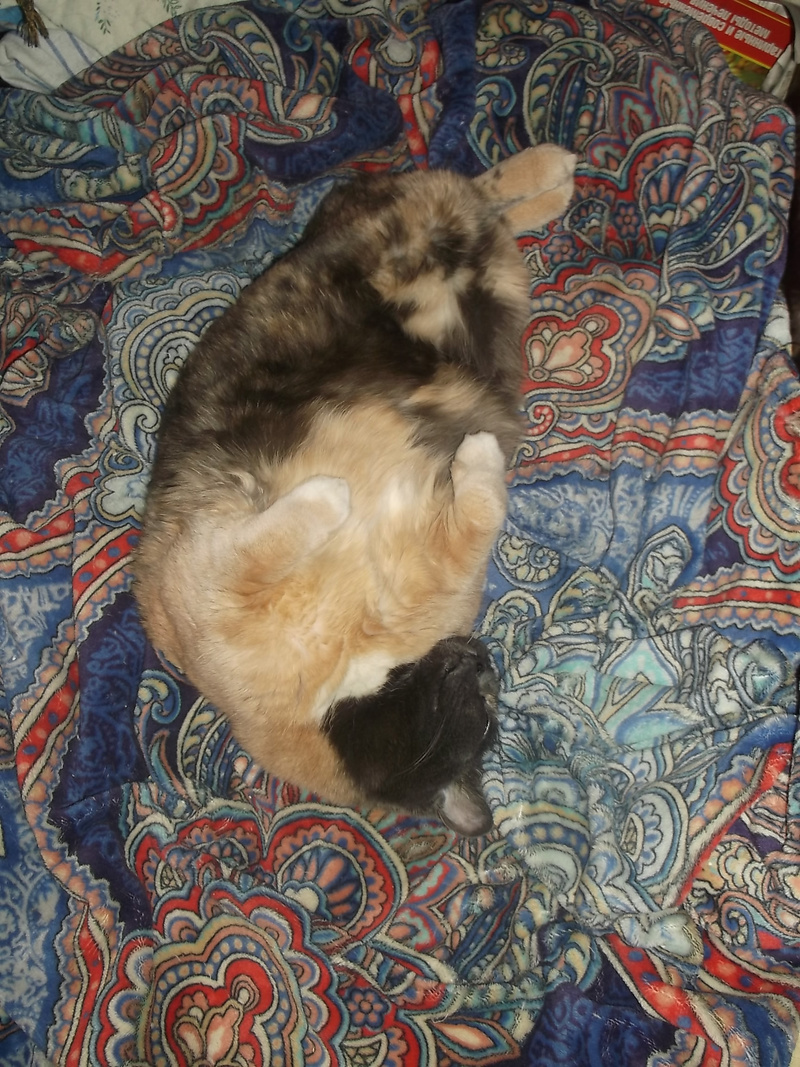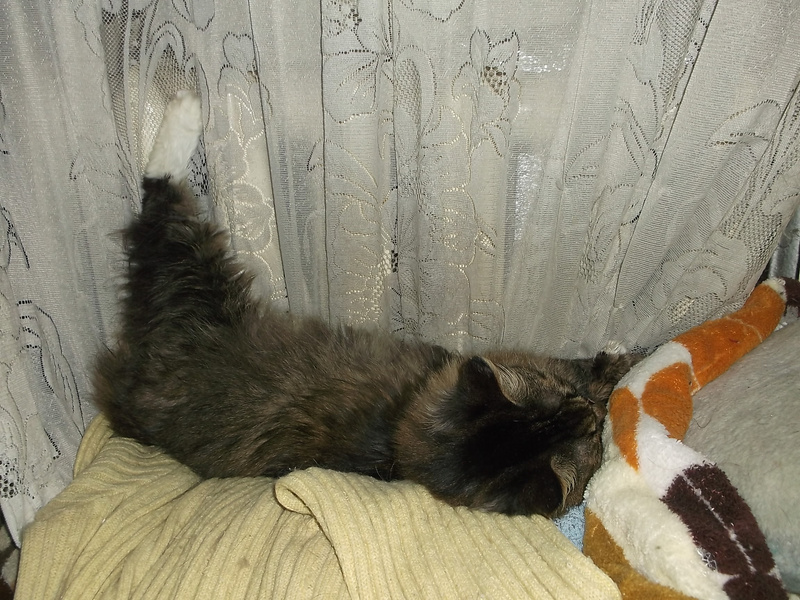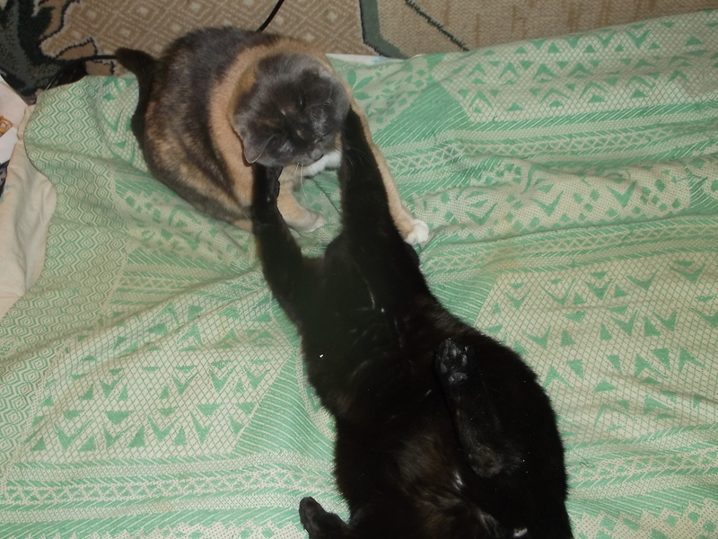 Хотя застилать кровать если Мики рядом, приходится несколько раз, пока покрывало встряхиваешь в воздухе и стелишь, он ныряет или под него или сверху, если под -его кто-нибудь ловит, если сверху, он ловит что то воображаемое , балуется ). А если кто-нибудь приходит, выходит с мрямря, прислоняется к ноге и рассказывает, как мы ему все надоели ))) У него с Лялей есть неуловимое сходство в мордочках, хотя разного окраса же, но обе мордашки шкодные и оба смешно втягивает розовые носики, когда шею чешешь )Ответ на сообщение Растушка :) пользователя Ort