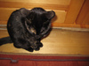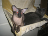 У нас полный пипец с нашим чудом... Вчера прихожу домой и не узнала ребенка... Шкерится и в жуткой панике. Ребенок весь вечер его из дядькиных "складов" добывал... Сегодня с утра дотумкал что можно под ванну ныкаться... Пришлось закрывать. И все утро, передвигались по квартире так - иду я, а впереди меня по пластунски он... Типа спасается бегством... Вот сколько я км по квартире нарезала, столько он впереди меня и ползал... Ел в домике... Когда выковыривала его из под ванны, располосовал мне руку и ногу... Девки с ним уже нормально, даже не шипят. Вчера сходил на горшок по большому - запах - пипец.... Сегодня ночью у ребенка в углу надул... Я думала он наклал, такой запах был... И у него изо рта запах нехороший... Ест ямс... Мочу у него собрать сейчас - анреал... В клинику нести... Он и так в стрессе... Может быть такая реакция на стресс? Я ему баюна сегодня растолкла в корм... Попою, посмотрим...Кать привет, ну как вы там?