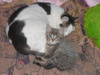 ). Большой спокойно отходит в сторону и к котеночьей миске, с его роялкой мелкой -- малявка тут же подбегает и срочно в свою миску мордой (мол, отойди, это мое, я есть буду). Большой опять к своей -- и этот туда же.