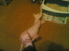 точки уже не красные а немного розовые и больше половины их уже вообще не видно.Доча не может говорить Ешик,называет его Език ( первая буква Е с точками на верху) решили что так будем называть,я когда в спальню захожу он аж подпрыгивает когда ко мне бежит.Сегодня с таксом знакомили еще раз,наш балбес Ешку в нос облизывает а тот шипит,но после 5 мин умываний терпел,думаю через недельку все будет хорошо.Катя