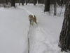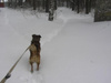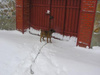 Кобеля понять можно - он там с молоденькой овчарочкой прыгал-скакал, а тут мы с другой стороны забора (хотя дальше вдоль забора - открытые ворота). Моя-то с радостью давай хвостом вилять и скулить, а парнишка умудрился мордаху просунуть в забор (крупненький такой парень