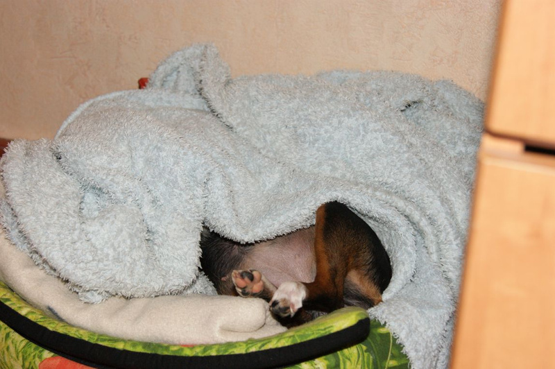 Вайсик пишет тебе письмо: "Ну так укрывалко ты нам сшила маловастенькое, не хватает на всего Вайсика, как бы он не сворачивался, попа - проветривается "