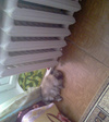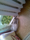 Больше ничего и не видно, чем то, что около уха киски. Крепления внизу, а не за гамаком. Напольное крепление для батарей сделали при капремонте дома (два года наза, когда ЖЭУ меняли батареи). Мне так больше нравится и надежней кажется, чем из стены что-то проходило под верхние части батареи. Сейчас практически батареи опираются на пол, поэтому у меня синяки на косточках рук от ребер батарейных при мытье полов.