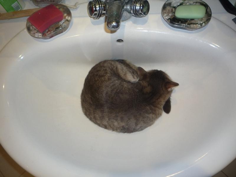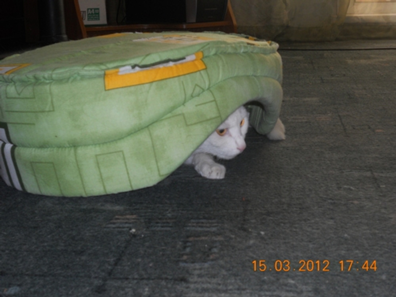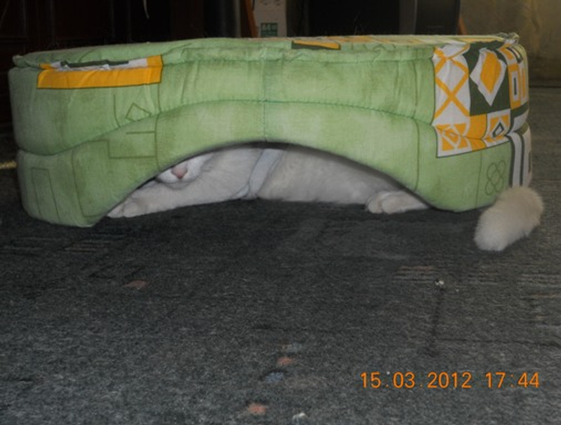 А вот сосед по фото Микус- паразит, пытался из тазика лоток сделать ..