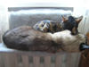 Зато второй гамак в этом момент в другой комнате пустовал. Черепашка Кэти от Маркиза ни на шаг, когда дело касается сна. Но в гамаке я первый раз "застукала" их. Если сверху смотреть на них, то Кэтька прямо на Маркизе лежала. Она легкая (ок.3,5 кг), а тайченок ок.7 кг, поэтому ему не тяжело от ее веса было - долго спали так.Ответ на сообщение а как спит ваш питомец - 3 пользователя Автоинформатор