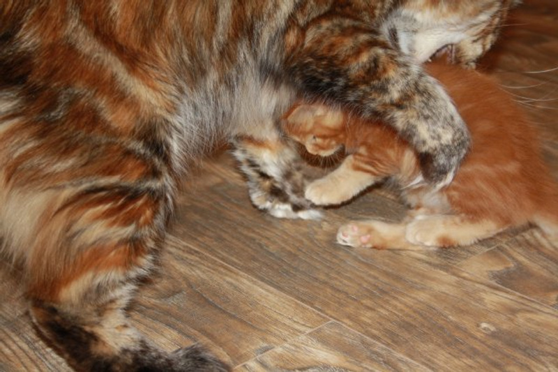 Немного не до котяток сейчас. Они растут потихоньку, из домика больше никто вылезать не хочет, спят целыми днями.