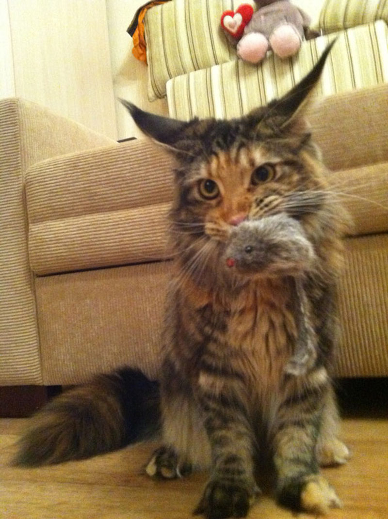 У нас вчера шоу было. Я сегодня собирался на лыжах кататься и вечером решил посмотреть, в каком состоянии лыжи. Достаю чехол, открываю - а там - любимая мышка Лема, самая первая, которую я ему покупал еще перед его приездом. Он тааак любил ее: спал с ней, играл, таскал везде за собой, но в итоге потерял, видать случайно засунув в лыжный чехол, когда лыжи сушились. Ну в общем, мышь благополучно пролежала там с весны до вчерашнего дня. Вченра, когда я ее оттуда достал, у кота чуть инфаркт от счастья не случился, выдрал у меня из рук эту мышь, давай с ней играть, но все это продолжалось до тех пор, пока не проснулась Буся. Эта мадама отобрала мышь и тааак шипела и рычала на всех, кто пытался к ее мыше приблизиться, что я офигел. Ни разу не видел у нее такой реакции на игрушки. В общем до полночи таскалась она со своей мышкой, притом определить бусино местоположение было просто - откуда в доме исходит рык - там Буся мышу свою охраняет
