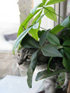 Меня зовут Маша, у меня живет ваша сестренка по папе Мята (если официально, то Riddlecoon G StarQuality Miata).Маша и Мяте привет от новых родственников. Действительно девушки очень похожи. Ну там папа конечно очень выразительный! А мамочки разные , и видимо поэтому приставки в имени разные.