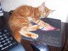 на комп. столе Ксаня просто залюбила коврик для мыши - загрызает за него, мышь компьютерная была изгнана и теперь сиротливо ютится рядышкомага я вспомнила про салфетки со стола,Ксаня их грызла и всей банде сбрасывала