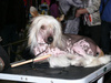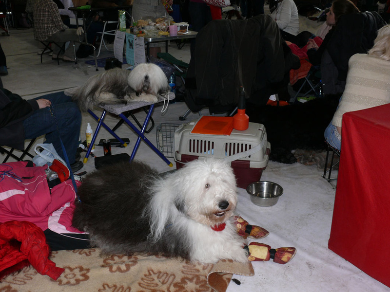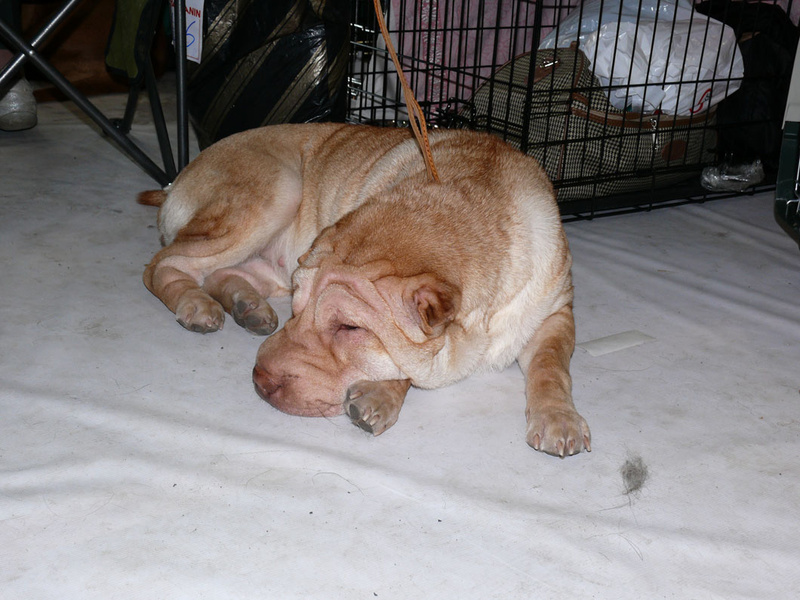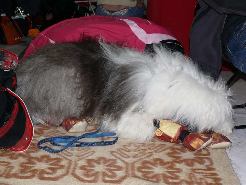 Народу и собак было очень много, а места очень мало, ну и собаководы, конечно, своим поведением не порадовали. Моя красотуля до сих пор дрыхнет, только поесть и погулять просыпается, т.к. устала очень - преочень (мы еще на БЭСТы оставались и уехали в десятом часу вечера), но ей простительно все, т.к. порадовала она нас вчера дважды лучшим щенком породы