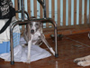но у нас маленькая собственная победа -мы слушали все команды, хорошо стояли на столе и показали наши зубки тете-эксперту:)