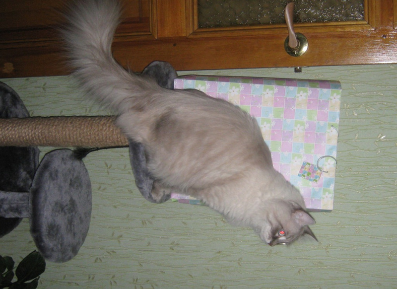 тут на Ханса недавно телефон, стоявший на зарядке, шлепнулся (он задел провод) и Ханс с перепугу стал метаться по комнате как ошпаренный, замотал шнур на шею, балда. Меня испугал - думала задушит сам себя нафиг.