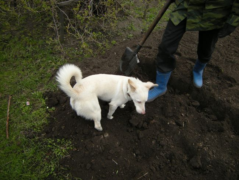 У меня Шилочка была такая помощница, я ковыряюсь в земле, она подскочит, нос сунет, и давай рядом копать. Похвалишь ее - еще усердней копает: "Гляди, какая я ценная, всегда в хозяйстве пригожусь!"