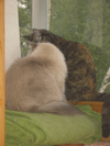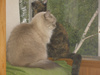 Ее котейка в первый же день прибрал Крыса себе )) Чего он с ним только не делает - и в воздух подбрасывает, и по коридору в зубах таскает, и спит с ним и т.д. )) Однажды мы наблюдали как Марек с Крысом поссорились