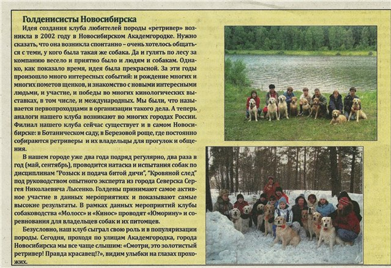 полный фотоотчет за 2 года на форуме сайта Ретривер - Сити (Форум ретриверов » Беседы » Наши встречи » Прогулки по выходным г. Новосибирск)