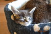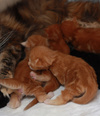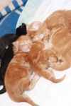 Таня, знаешь, Лем как-то проявляет интерес, когда они шевелятся, а когда дрыхнут - не рефлексирует что ли, что они котята - так, меховая кучка