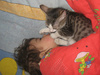 Они сейчас из квартиры переехали в свой дом, но Шкет живет в доме, на улицу его не пускают. Прежние хозяева этого дома бросили своего кота - "нафиг он нам нужен, таскать еще с собой, другого заведем", так что у Шкета появилась компания (к слову, Рыжик пошел разбираться с ним в первый день - победил Шкет