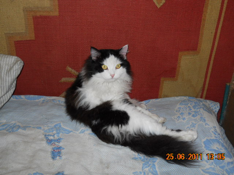 да, Лен, растет Надеюсь еще вырастет - ему ж только 9 месяцев (сегодня как раз). Но худоват - носится, как оголтелый и днем, и ночью. Все в длину уходит пока надеюсь, что не очень растолстеет в будущем. Он прыжками от 1,5 до 3 метров по квартире передвигается поэтому и сфотать его - только лежачим в редкие минуты отдыха