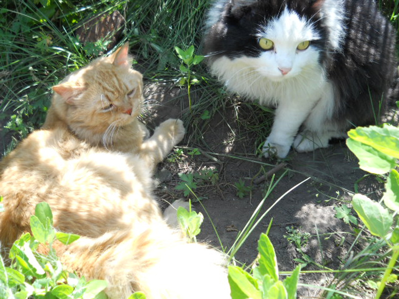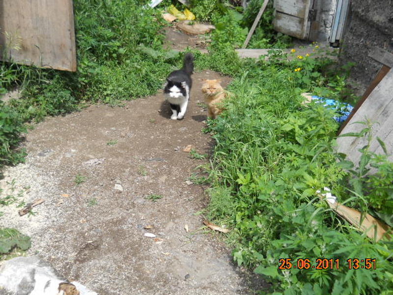 А в деревне кошек немного, в основном, коты, которые строго охраняют малочисленных дам от посторонних...