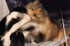 ......... Гоняются друг за другом, стаскивают зубами за лапы, хвост, ........Потом лягут на диване и нализывают друг друга так, что любовь - не иначетоже самое. Ханс всех дев "воспитывает", девы чхать хотели. Так что он сдается и всех кошек в доме моет. Прямо СЭСЯ даж внимания на это не обращаю уже