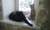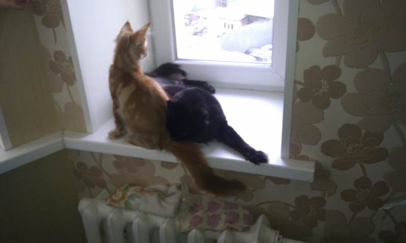 Утром Жжек лежал на подоконнике, а Тигга плакал внизу, потому как ещё не умеет сам запрыгивать... подсадили Тиггу и было всем счастье!!!