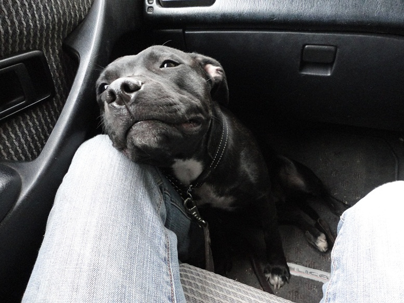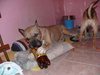 Так Оддька замучила, достаёт его, кусает за пятки, локотки, за шею танет-это она его на игру провоцирует. Он, конечно, играет когда хочет, но частенько и не хочет, либо не обращает внимания на неё, терпит, либо начинает рычать. Но вот когда он хочет спать, к нему лучче не лезть(а она лезет)