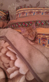 На рыжем у него включается режим "стелс" или "Инвизибл"! Если страшно... вокруг много народа или тащут в ванну мыться, то он садится на рыжий коврик и его типа нет!Плед рыжий на выставку возьмите, котэ будет чувствовать себя приотличненькоон в полной уверенности, что его там никто не видит!