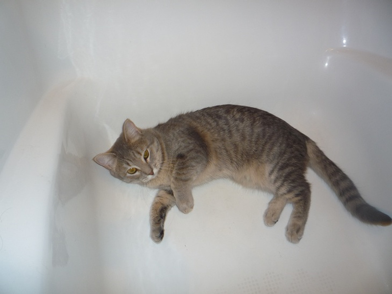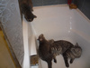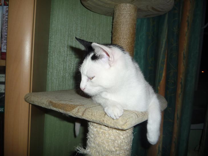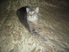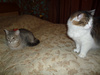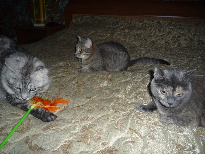 Наша Марта ( Мартышка ) не прошла испытательный у моей мамы ( вернее мама не прошла- коша молодая лезет во все щели и в газовую включенную плиту ) мама сильно переживает , даже плохо было ( все-таки 8 лет без животных уже весь навык потерян ) Решили ее забрать до пристроя к себе , хотя с ней дружил только Амур и Чармик . Остальных просто колбасило от котят
