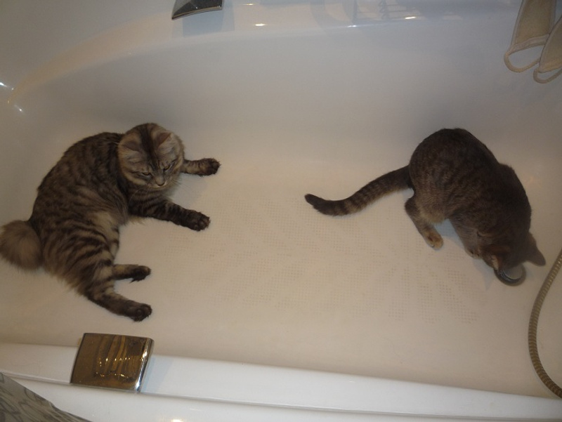 Первые 3 дня мои держали оппозицию -шипели, урчали , махали лапами и гоняли бедную Марту со всех мест.