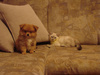 и кошка.... Не волнуйтесь, сориентируется! Это очень сообразительные собачонки- моей одного раза по мордасам хватило, чтобы к кошке начать попой подходить)))). А теперь мы подкарауливаем кошку и со всей скорости ей на спину прыг- сбила с ног и моментально в сторону, потом за хвост тащить начинает... Такое веселье по утрам особенно- огого. А что тут происходит, когда они одни- даже представить боюсь