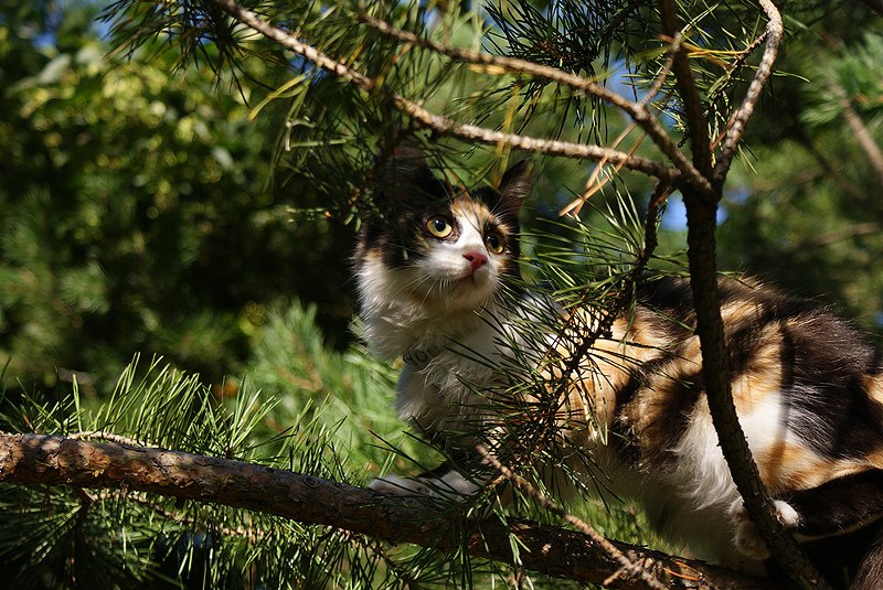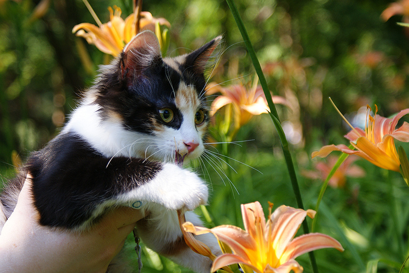 Вообще кошка очень любопытная, ничего не боится, все надо попробовать на зубок, на коготок ))).ничего, кроме собак и детей