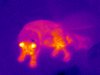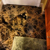 тоже лежал в раковине с прохладной водой.На спине? аккуратно положив уши на край?