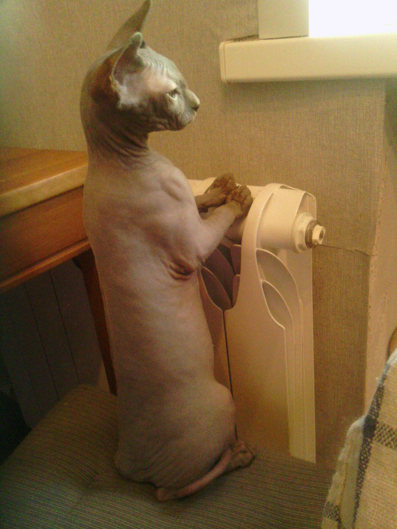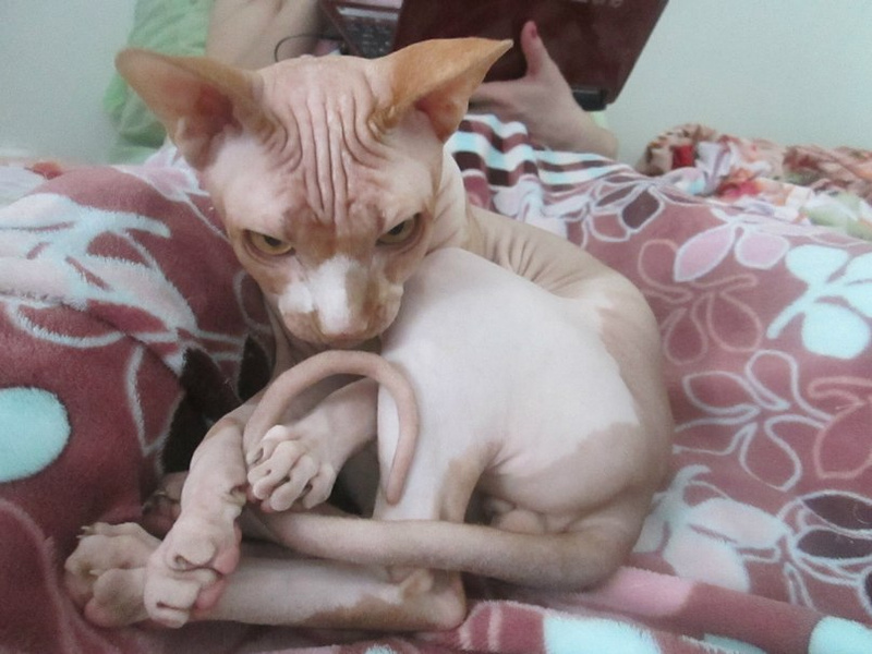 она у нас лохматая( поэтому ожоги нам не страшны, она сейчас ходит гулять по лоджии, а когда были солнечные дни так по часу сидела там), но вет врач, который ствил прививки, сразу узнал в ней сфинксатак она все же канад? или кто?