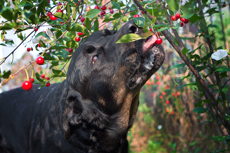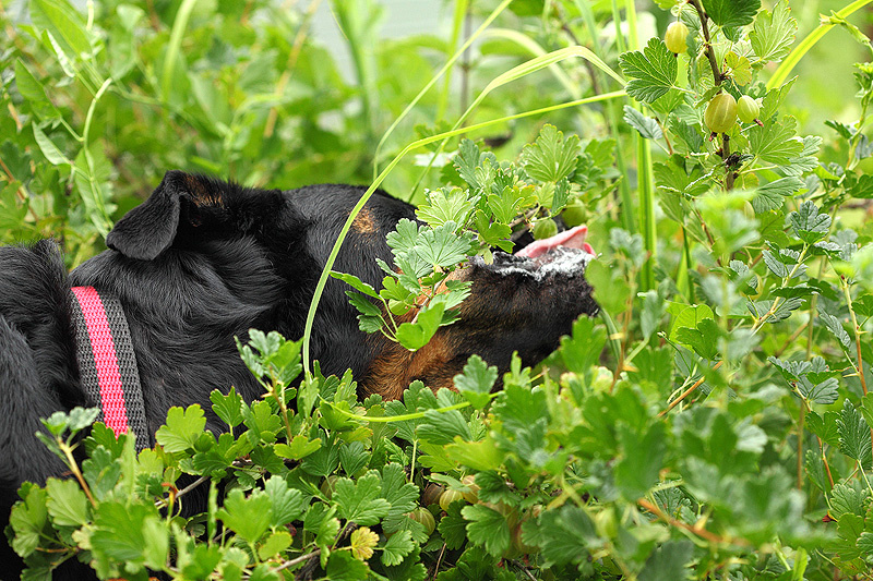 Фотографироваться вообще не любит, психует, рычит, лает. Но ягодки - это святое, тут уж что хошь делай