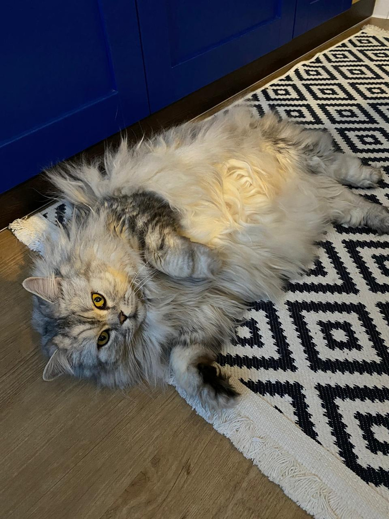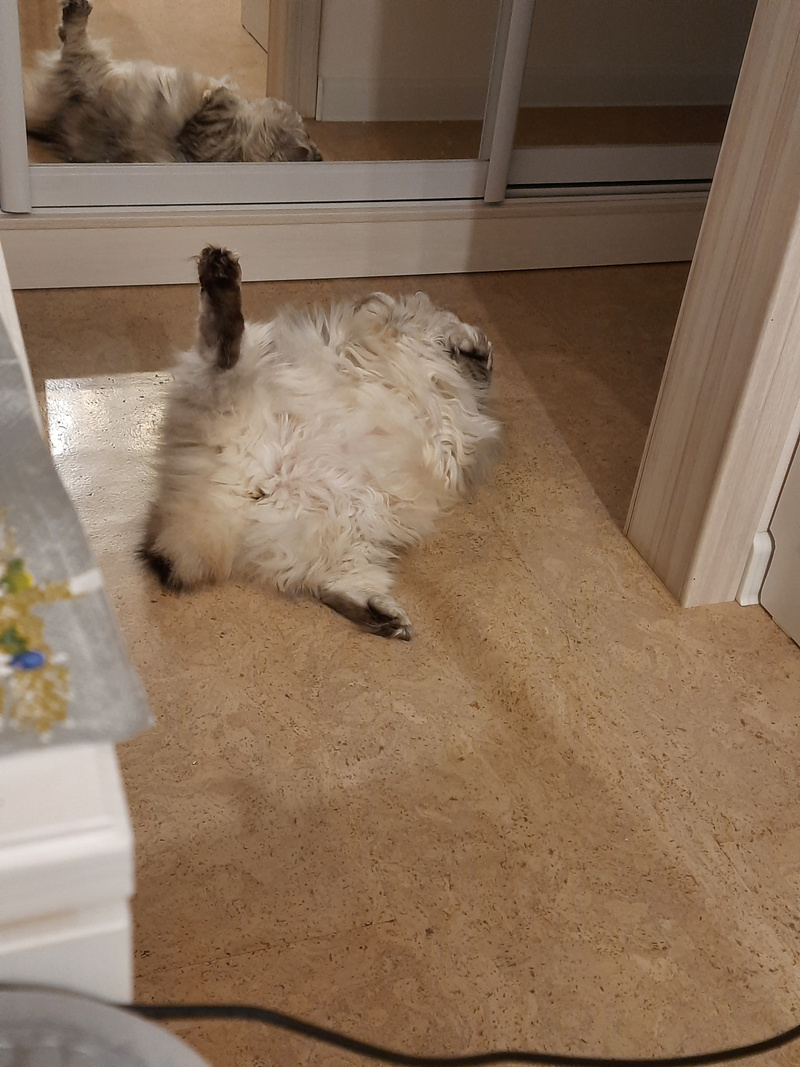 сегодня бегала с младшей кошкой и играла с ковриком)))