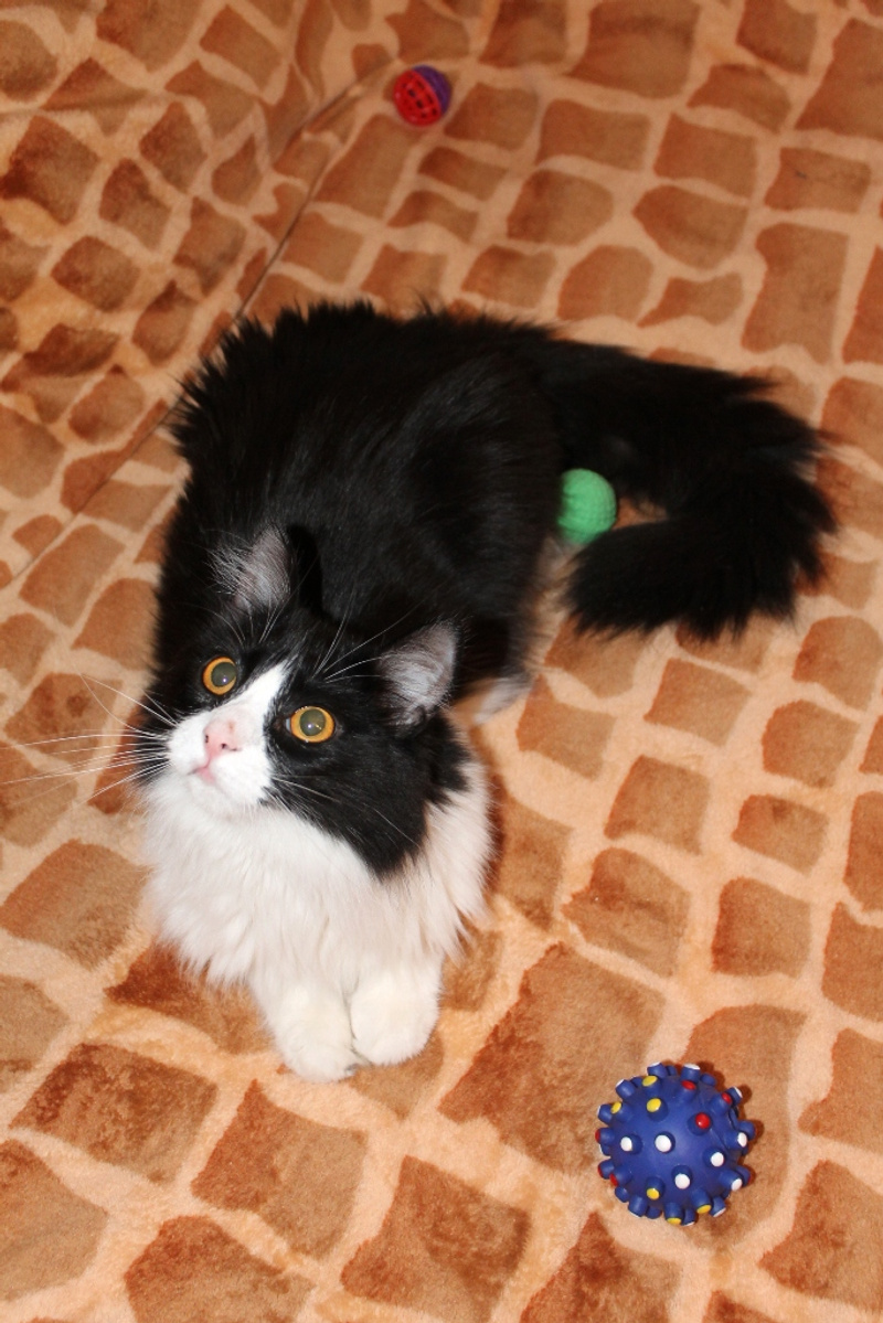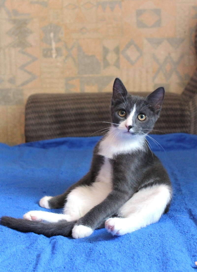 Чарли - котенок подросток 4 мес., был мной забран из подвала с кошкой Иришкой после того как просидели там замурованные трое суток и во избежание еще раз такого случая забрала, Иришка пристроилась осталось дело за Чарли